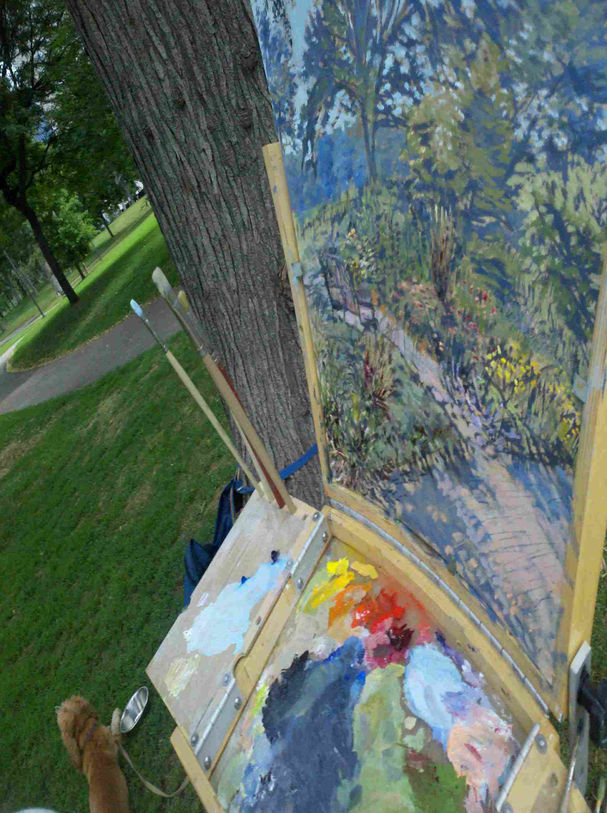 Courtyard Clearing painted during #artshanty pop-up at Minneapolis Institute of Arts. Watch Outdoor Painters of Minnesota at work in Target Park during museum hours September 10-13!